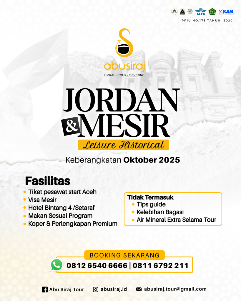 π Jejakkan kaki di tanah para Nabi. Jelajahi Petra, Amman, dan Cairo dalam satu perjalanan penuh sejarah dan spiritualitas bersama Abusiraj!